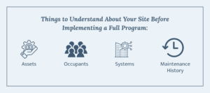 No two facilities are alike. Each courthouse, detention center, administrative building, or public-safety campus has its own age, design nuances, operational realities, and risk profile. It’s hard to understate the importance of developing a comprehensive understanding of each site’s assets, occupants, systems, and maintenance history before implementing a full program.