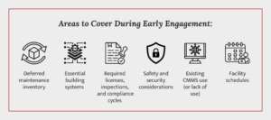- Engaging stakeholders such as procurement, finance, risk management, and facility users.