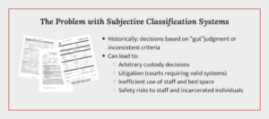 A subjective classification model relies heavily on experience, charge severity, and institutional memory. It may function adequately for years – until population characteristics shift or operational stress increases.