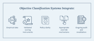 For correctional leaders, objective classification is not a technical exercise delegated solely to classification officers – it is a strategic lever. It influences safety, fiscal responsibility, staff morale, equity considerations, and long-term infrastructure planning.