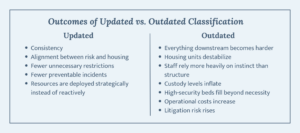 When classification functions as intended, you see consistency. You see alignment between risk and housing. You see fewer unnecessary restrictions and fewer preventable incidents. You see resources deployed strategically instead of reactively.