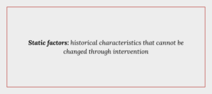 Initial classification evaluates static factors – historical characteristics that cannot be changed through intervention. Common static factors include: